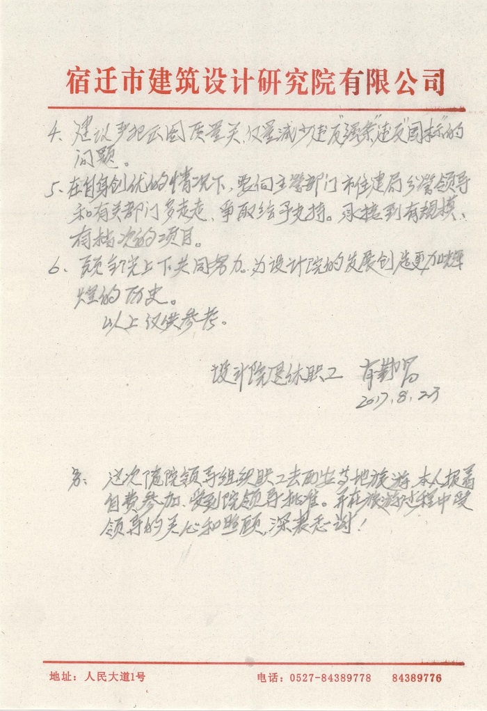 另:這次隨院領(lǐng)導組織職工西安等地旅游,本人自費參加受到院領(lǐng)導批準。并在旅游時受到領(lǐng)導的關(guān)心和照顧,深表感謝!